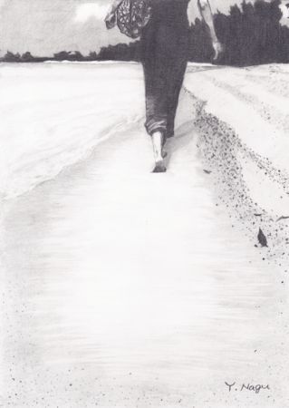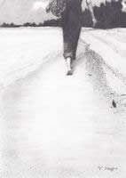 Enjambées dynamiques pour cette œuvre du présent. Et si le pas alerte de la jeune fille nous conduit vers une destinée inconnue, sans en connaître la raison précise, obéissant à notre désir, nous la suivons.