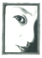 鏡に自身の顔を写し、その顔の一部をクローズアップする